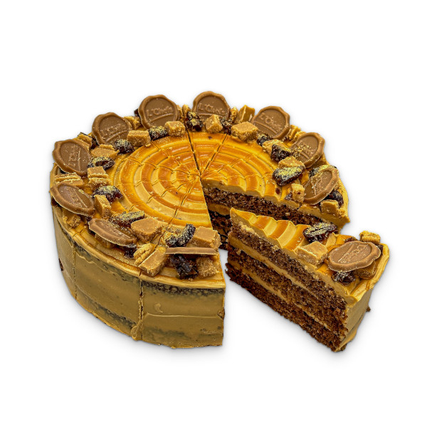 83. Karamelový dort se slaným karamelem a kousky datlí, šlehačka