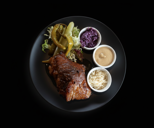 extramasitá, v domácí marinádě, Coleslaw, košík pečiva